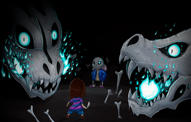 Sans isn't really there! I didn't imply it before but Sans is the Gaster Blaster in this AU, though can project himself as the small Sans.