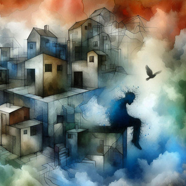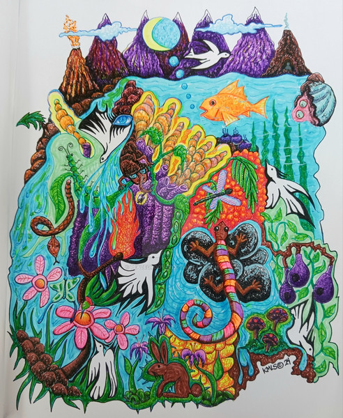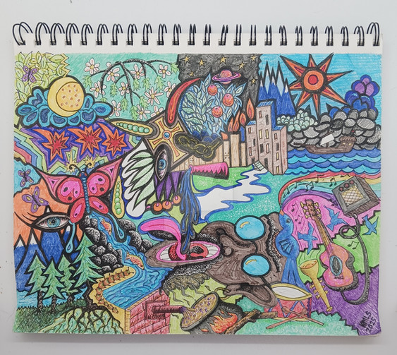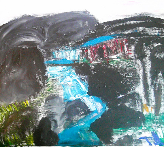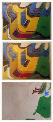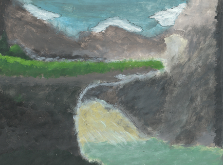 image of original painting. oil on canvasboard. c. 1987 (age 20). A compilation of a series of images - chaos and calm residing together.Related content