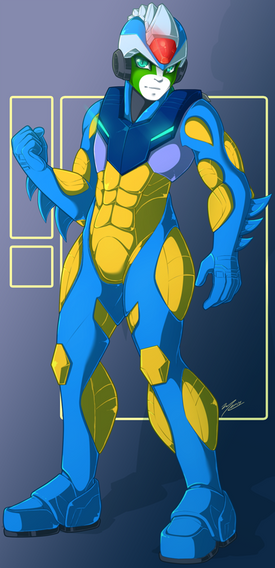 His name is GPride, he's using some kind of high-tech bio-armor tokusatsu, and the character belong to Jesterstar.