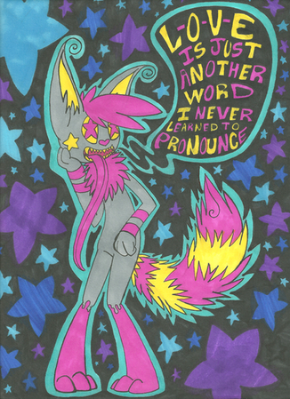 i figured it was about time for a good ref sheet for Ozzi, especially since i realized today that the dumb kitty cat is 5 years old now. five friggen years old. i first created her on a whim back in 9th grade because i wanted a fursona. i had made a few before but none stuck. but she did, for some reason Ozzi was the one that stuck around, even if she wasn't really like me at all (fact: Ozzi was named after a character in Watchmen [Ozymandias] because of the color purple i used for her was the same as Ozy's costume). And for 5 years this dumb cat has just stuck with me though retired as a fursona (i have a different one now shh), she still does her job at representing me, because over these years she's sort of turned into a mascot for me, my most recognizable character. so now she's the physical representation of my art. Ozzi pretty much IS my art.