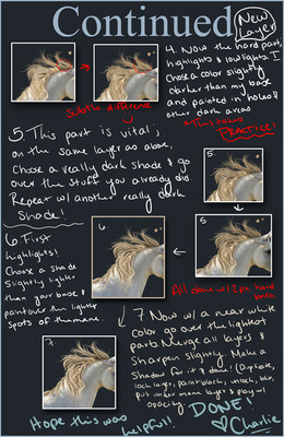 Finally a mane and tail painting tutorial that doesn't require a mouse! Thanks for uploading this, gonna give it a go now.. Wish me luck!
