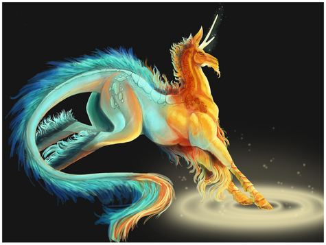 The intensity of the blue and turquoise also harmonizes together. The colors match there personality too. It looks so clam like the ocean. The markings are great too so realistic. I love the way you did the eyes and how it looks like a dragon's eye ; I love how you did the hind hoof and how some dragons have that kind of leg. Wow and the tail looks so good and well painted. The whiskers look so long a silky. You did a wonderful job painting the hair crest. Like a Crested Dragon Well bye I'm kind of running out of room so Bai!