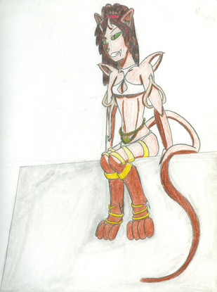 Okay, this drawing is over a year old. I did it with Crayola pencils on 110# paper, which I have found Crayolas to just love. Smooth paper + Crayolas = Happy!Now, why did I submit this if it's so old? I'm planning to re-vamp Cleo soon, and I just want you guys to see the old version. But, this isn't even the oldest Cleo drawing! See the original here: www.deviantart.com/peachfuzz/a… You can see that I chucked the clumsy head-dress and cape, in exchange for a dainty tiara-thing. You can bet that I will make even more changes when I redraw her this time!