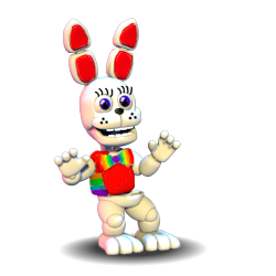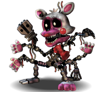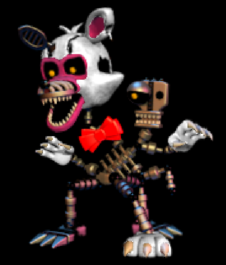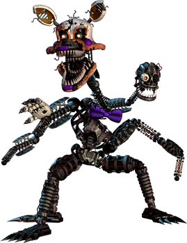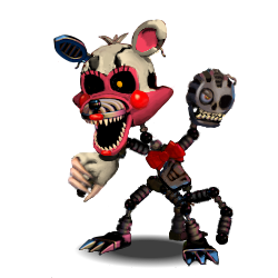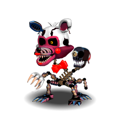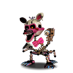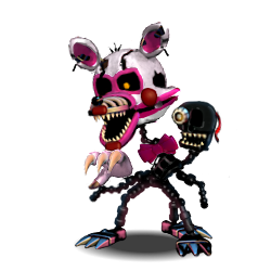 Someone should model adventure Nightmare Foxy without the missing fur on his ear and near the eye, but the snout is still half furless. Resksin it and add color circles on cheeks and add lipstick. Make the right eye, our left white and — HUZZAH! You made Adventure Nightmare Mangle!