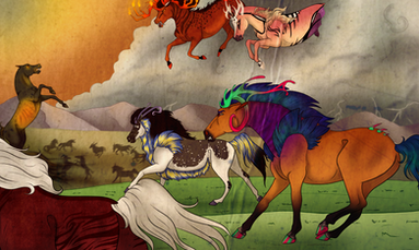 History: Rav is a dimwitted as he is cruel and he's always been like that. Since foalhood, Rav has been a bully and has focused most of his aggression on the smaller and weaker stallion, Shrike . As he matured, Rav's anger and need to dominate others grew out of control and Shrike's body started to show the scars of their encounters. While pursuing Shrike out of their herd's territory, Rav encountered and was recruited by members of The Moribund .