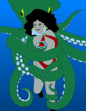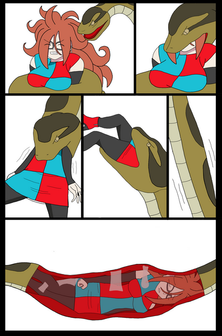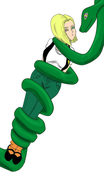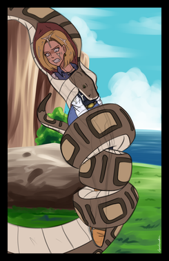 As requested by an anonymous user, here's Android 21 from the Dragon Ball franchise in human form wrapped in the coils of a snake.Sketched in pencil; lined, colored and backgrounded in Inkscape.