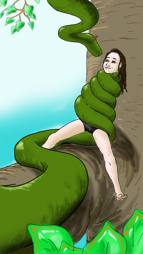 I started this one over a year ago and I had the sketch just sitting for a while. I recently added some final touches to the line work plus coloring and shading.This was fully made in Paint.NET. It'sĀ a bit different from my other work as I mostly used the paintbrush tool for the lines instead of the line/curve tool so the lines are sketchier as a result. I also tried a more complex pattern on the python.