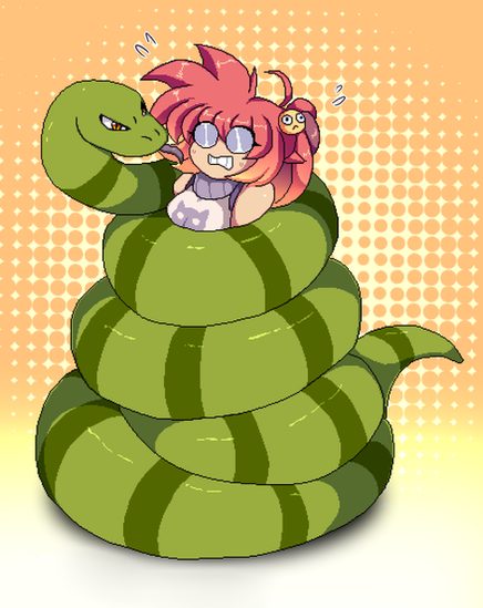 For somepure , Satoko Hojo sitting while wrapped up by a snake.Sketched in Paint.NET, everything else done in Inkscape.