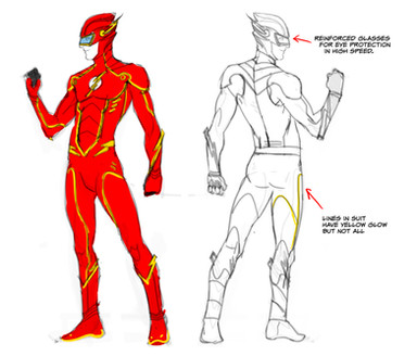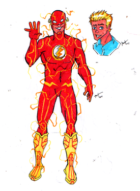 I've started thinking about that old action cartoon show I watched a while ago called the Justice League and my favorite character The Flash. The combination of that and me watching Project Runway got me to thinking about how Flash's costume is pretty much just red and yellow spandex from head to toe, sans the little metal lightning ear bolts. "It must be chilly when winter comes 'round" I thought to myself. "He would need a coat... except for the fact that he can vibrate himself to be warm." But I kept thinking about what a Flash coat would look like. Hence, I've designed my first piece of clothing... a winter jacket of which I would have no hope of having the skill to sew one together in real life. But it was fun to draw it out.As you can see this is incomplete and I still have quite a bit of work to do on coloring and line.