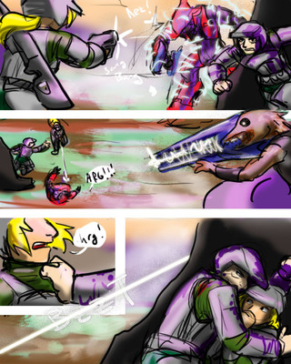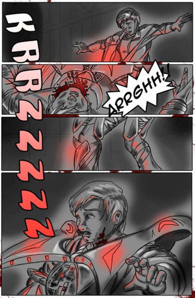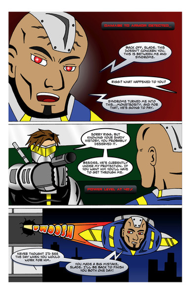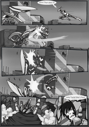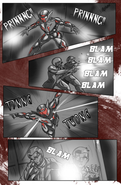 There comes times where you just want to cut loose and do something cool. So here's an action page where we don't know if Arthur can escape his laser-cannon carrying opponent.Origin tale of Arthur (the one dodging) here: