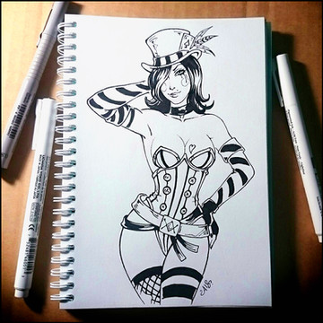 #bayonetta #glasses #hair #hairstyle #heels #ink #moleskine #pinup #pinupgirl #rose #witch #inktober #inktober2016
