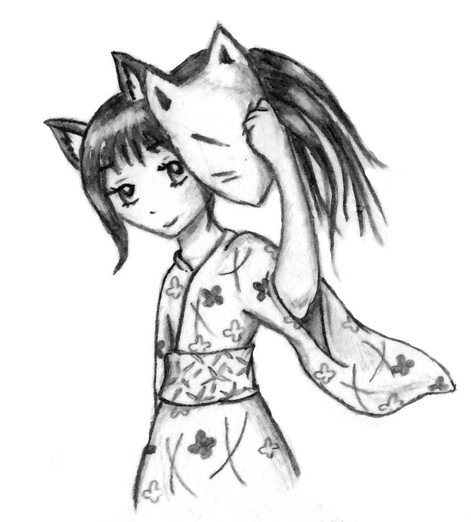 "Somewhere in this world, a kitsune is wearing a mask with your face on it."rushed work, drawn yesterday and colored today. just wnted to submit one mroe halloween pics before i head to work.