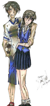 Mai and Bou from Ghost Hunt. It's good, go read/watch it. Original sketch: [link]Related content