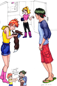 This is so old! I have newer drawings of them being cool and more mature. But of course you can color it, as long as you link to my page AND come back and show me after you post it, okay?