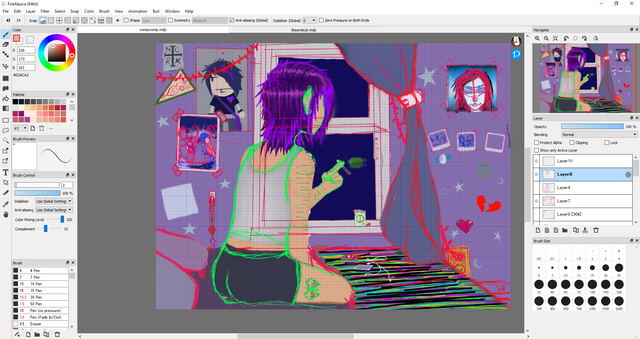 I really enjoy all the Details, gives away a few things about him and gives the scene a realistic and living touch to it. ^-^