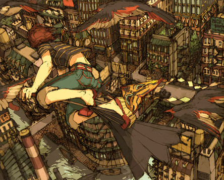 I love the composition and the buildings - it all looks so solid and real, despite being so crooked. <3