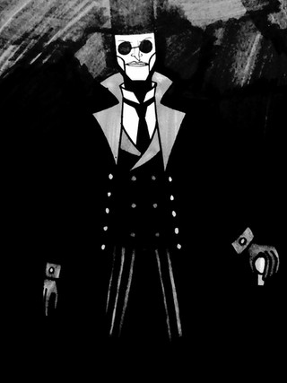 i really like your sketchy style, and the reds and blacks you use. He looks like some guy who colects the money that people owe someone... he looks mean and misterious... And i liked the background kinda blured in some points. GREAT WORK!!!