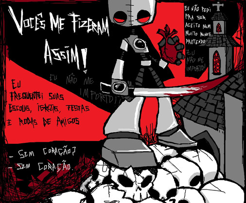 me gusta mucho la textura que usaste de fondo, el dibujo del robot es muy creepy y esta muy bueno. La linea, cada minimo detalle todo logra una composicion increible