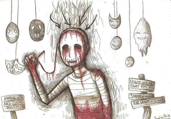 es muy triste. el tener que mostrar una cara cuando en realidad nos sentimos diferentes a como demostramos. snif! como siempre tu trabajo fantastico[link]