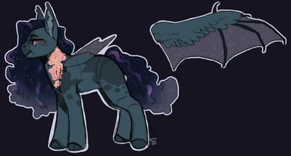 - Pegasus wings changed to Bat wings (semi-transparent, sparkly skin shows the bone underneath with added claw used as thumb)
