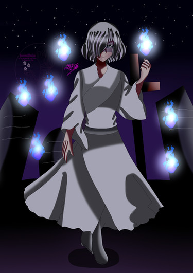 #ghost #purple #blueeyes #blueflowers #fantasylandscape #purplelandscape #original_character