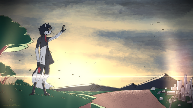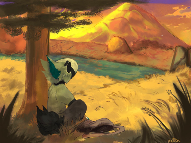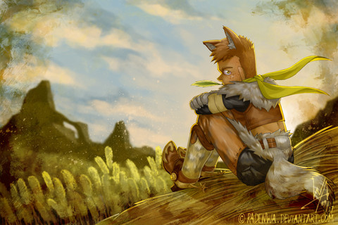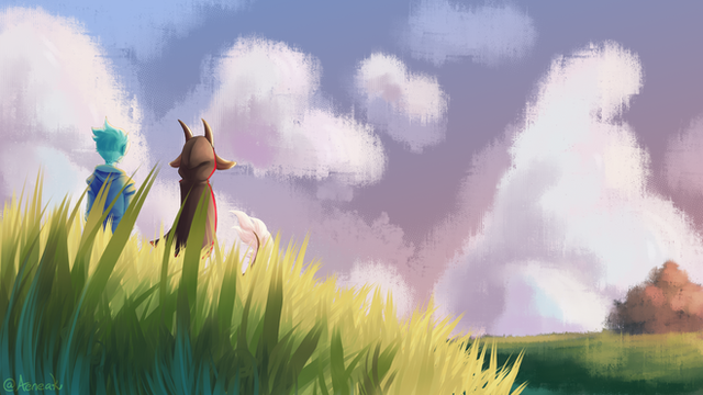 #scarf #shi #morningclouds #fantasycharacter #grass #lonetree #morninglight #morningsky #plains #tree #original_character