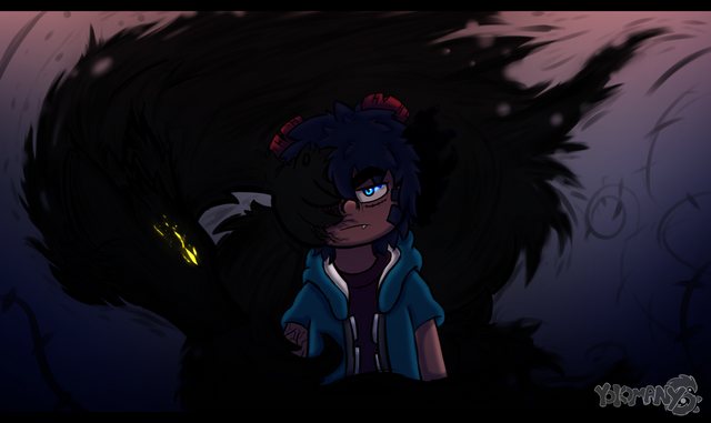 This is literally a test picture featuring Shi.(I think all of my artworks are just tests)I wanted to make a contrast between a dark place and bright lights,