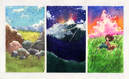 The skies are inspired by an irl evening sighting! I basically speedran making successive blobs of color while looking at my window-