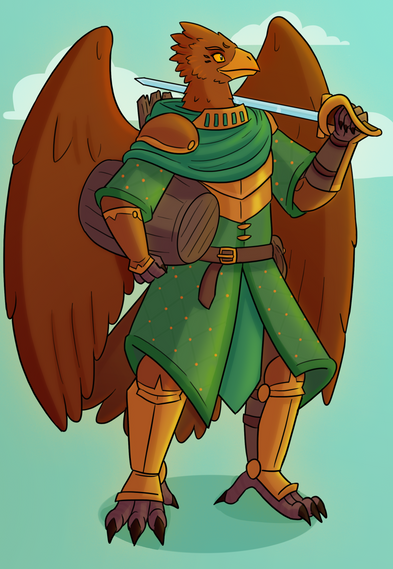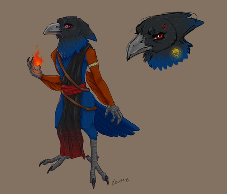 A commission of someone I know IRL's DnD character. He is a sorcerer aarakocra on a mission far from home. It was a lovely challenge to draw a mostly nonhuman character!This art may only be used my the person who commissioned it.