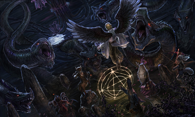 I love the depiction of the sinister creature against this seemingly dark magic, depicted in such bright colors. Nicely done!