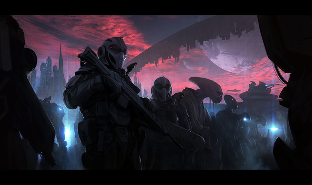 It reminds me of the colicoids in swtor, very perspective! Perfectly done! Great Detail in landscape, I love the Details of the fight, the destroyed enemy. It is great!