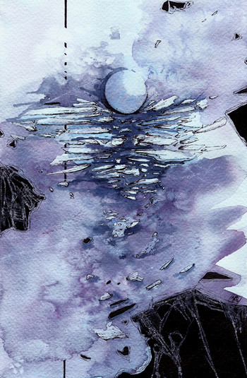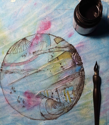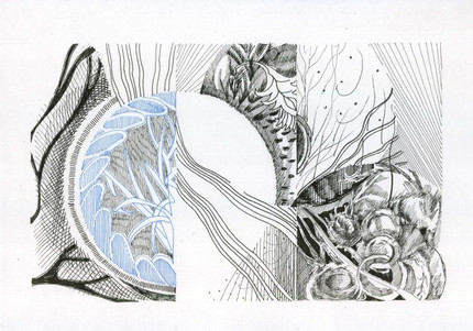 Watercolours, inks, ballpoint pen, candle wax, salt....original size: 30x40 cm