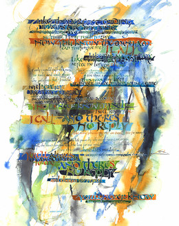 Dużo w tej pracy zawdzięczam ciekawości i chaotyczności myśli: "a jednak da się pisać...no dobra, wyschło...teraz chlapnę błękitem...o tusz stoi, ciapnę nim tu..."