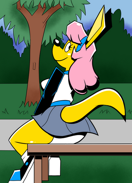 Sorry to say, but I thought the same thing DraxTD did. The legs are different and there's a rather obvious female persuasion to her, but she does remind one of Pleekly if one is familiar with Lilo & Stitch. Though I could image Pleekly seeing this and going, "Wow! Why can't -I- look that attractive??" XD