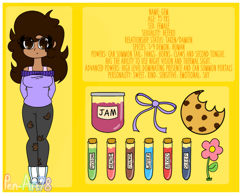 Personality: She loves baking and making flower crowns. She’s very kind and sweet. She is very shy though.
