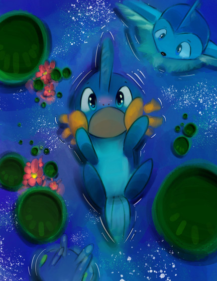 2 days ago, I caught a shadow Swampert from Pokemon GO.I loved that kind of Swampert too, so I decided to draw this. He is really adorable as the normal Swamperts.