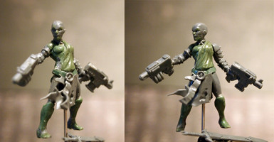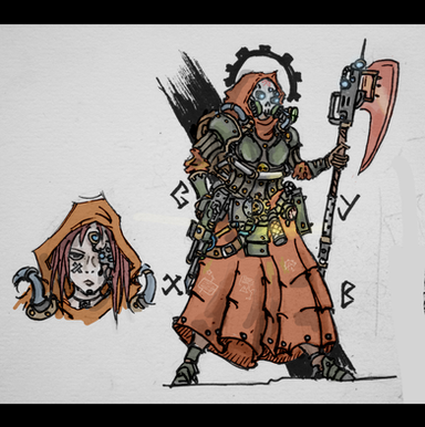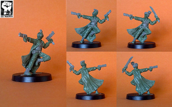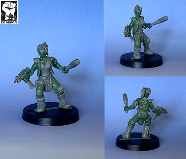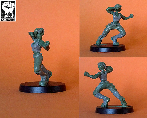 Another collaboration with Fox Lee (see also Biteme Graphics ). This is one of her characters 'Kami'. Since she will never see paint, I tried an experiment where I endeavoured to alternate between sculpting putties to differentiate between clothing, flesh, hair etc. I think it came out pretty well. I'm also looking into options for 3D scanning and 3D printing to possibly reduce the scale (to that of normal table-top games)Completely scratch built in green-stuff and Pro-Create, at a totally different scale to what I normally work in (she is roughly 45mm tall).