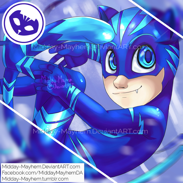 I have too many cousins under the age of 9 to keep track of. So one of them that turned two likes PJ Masks (some show for really young kids), so that's what he's getting. Also, I can't be the only one who thinks the designs of the characters look...bad. Official Cat Boy's head is way too fucking long; it looks like a squash and I don't like it. So I took liberties to make him look less atrocious, in my opinion. Also why does he look like an abbandoned love child between Sportacus from Lazy Town and Chat Noir from Miraculous Ladybug? Oh well. Happy birthday, cuz!I own the art, but PJ Masks belongs to it's rightful owner.