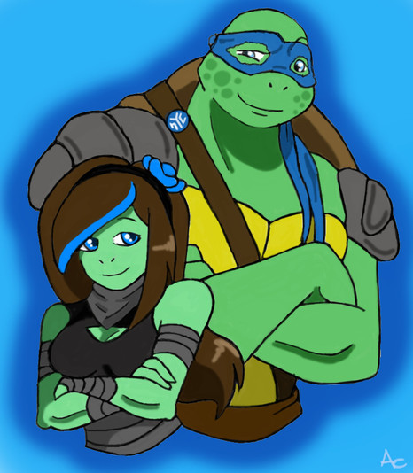 I actually had this picture finished a few days ago, I just didn't post it because I was working on some videos. Anyways more Leo X Karai (though in this case it's more friendship) because it's my OTP for TMNT 2012 (not as big as my #1 OTP Sly and Carmelita but I can't draw them worth shit but some day I WILL FUCKING DRAW THOSE TWO).This isn't actually fucking cliched sad. You got your non feely pic of Leo and Karai? Happy now? (OH, LEO'S STANDING ON A CRATE OR SOME SHIT THAT'S WHY HE'S TALLER THEN KARAI K?)