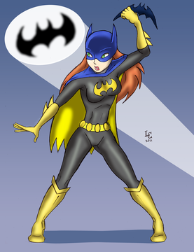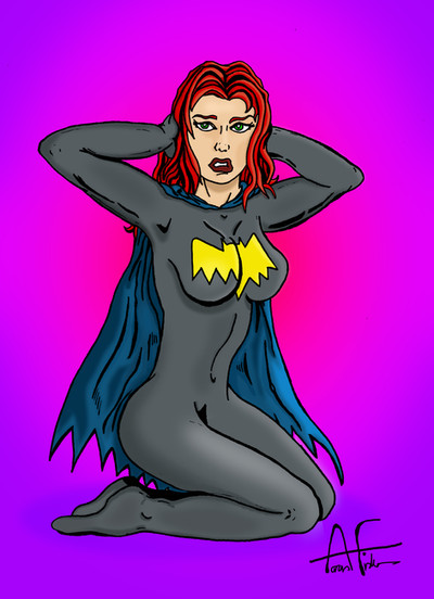 Batgirl (Cassandra Cain) again. Her Utility Belt sure is proving its utility just now, even though it appears to be slowly falling off. Also, that Bat has amazing timing, perhaps as a result of his Shakespearian theater training.Ink drawing colored in Photoshop, not marked mature because, well, there's a bat in the way.