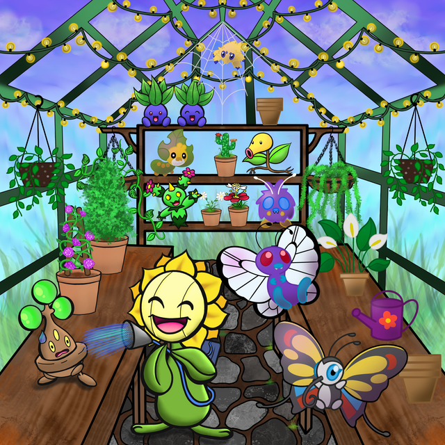 #butterfree #conservatory #fanart #garden #gardener #plant #pokemon #venasaur #chillvibes #relaxingscenery