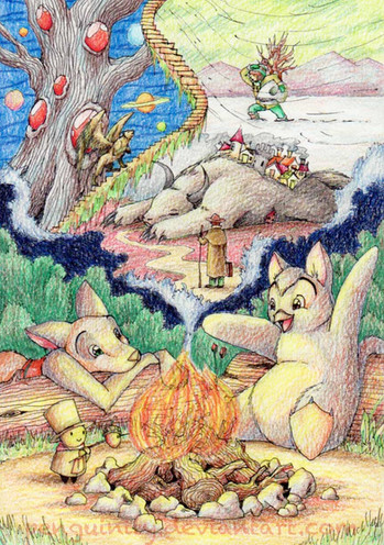 Colored pencils, black pen, Photoshop.