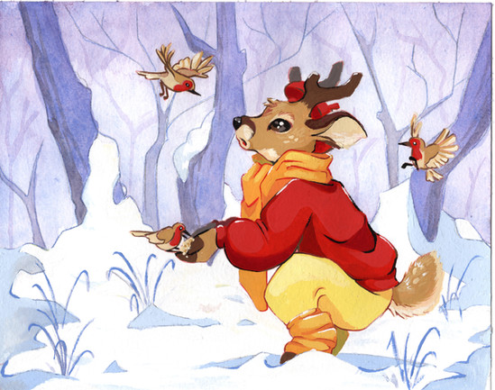 Oooh, very good questions.Β Β I do love the image of the sparrow with his antlers caught in the branches. He'd get all angry and jumpy.Β Β (But hopefully he'd get to free himself.)