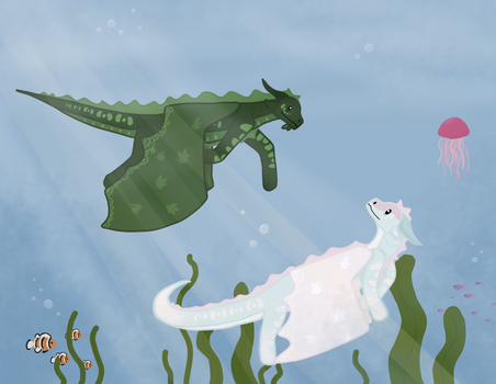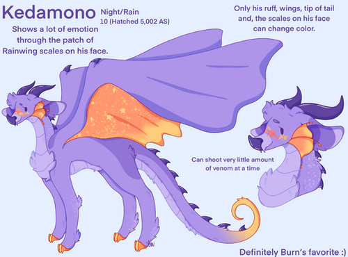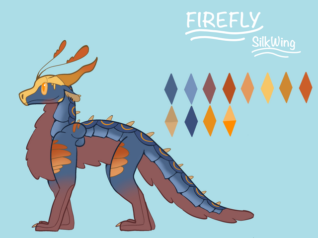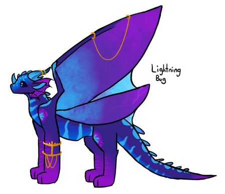 New character! Designed by XM00dSwangLightning Bug is a Rainwing-Hivewing hybrid. She has a little golden frog, Buttercup, for a pet. A Hivewing named Tarantula came over from Pantala after he was freed from the mind control. He had been a prisoner in Wasp's dungeon for protesting the killing of all the trees. He went to the Rainwing village to do research and met Berry. They fell in love and had Lightning Bug. Once Lightning Bug was old enough, she went to Jade Mountain. She spends a lot of time in the Library and the art room. She enjoys all her classes. Her father was a researcher, and she's inherited that curiosity.