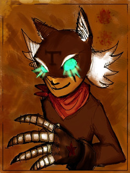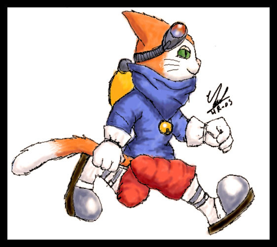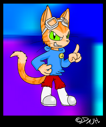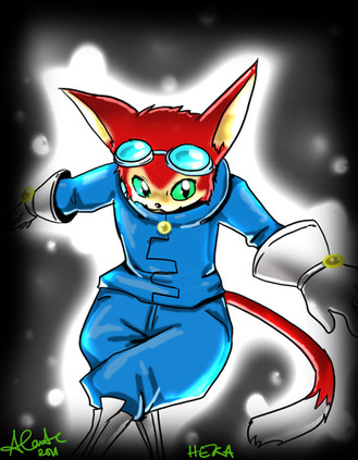 Hah! Este es un trabajo de coloes que hcie en uno de los bocetos de Scott Ramsoomair (www.vgcats.com). No le pedi permiso, así que esperoq eu no me demande y me maten. Aunque si se lo mandé y se lo enseñé y dijo ue estaba bonito *-*.Es Leo como Raz de Psychonauts.
