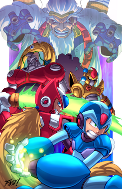 Finally we were allowed to submit our piece for the Udon Megaman Tribute book, so here it is!! 8DThe lineart was done by MAH HOMIE , so go and crush him with your love.