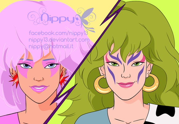 Un pequeño headshot de Pizzazz Gabor, la recordada lider del grupo musical de ficcion Las Misfits, en el cartoon de los 80s, Jem y The Holograms.