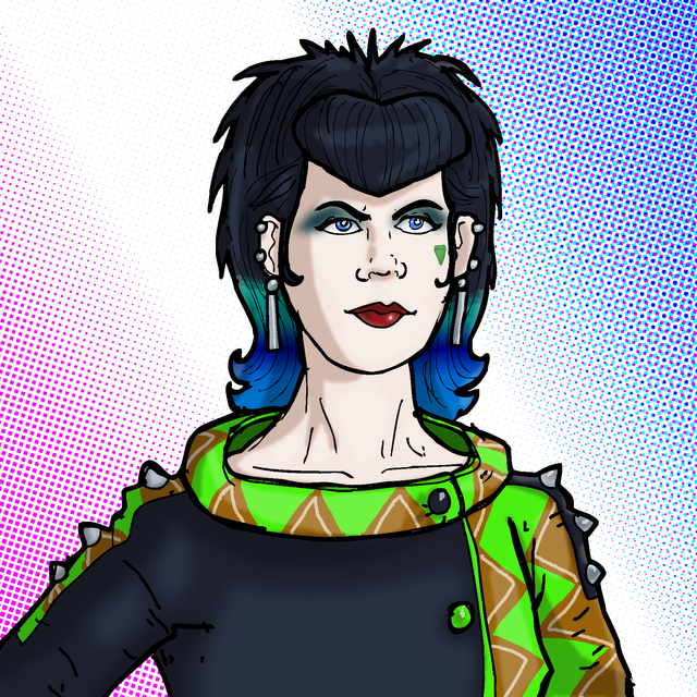 English:A little headshot of Pizzazz Gabor, the remembered leader of the fiction music band The Misfits in the 80s cartoon, Jem and the Holograms.