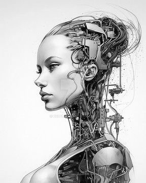 #android #cyborg #drawing #female #gynoid #human #lineart #parts #robot #transhumanism #woman #computer