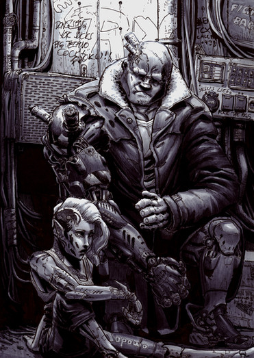 I'm also big time into sci-fi. Besides b/w, this specific illustration would also rock in color. I also happen to have 1 similar image on my Deviant web pages. Check it out here: